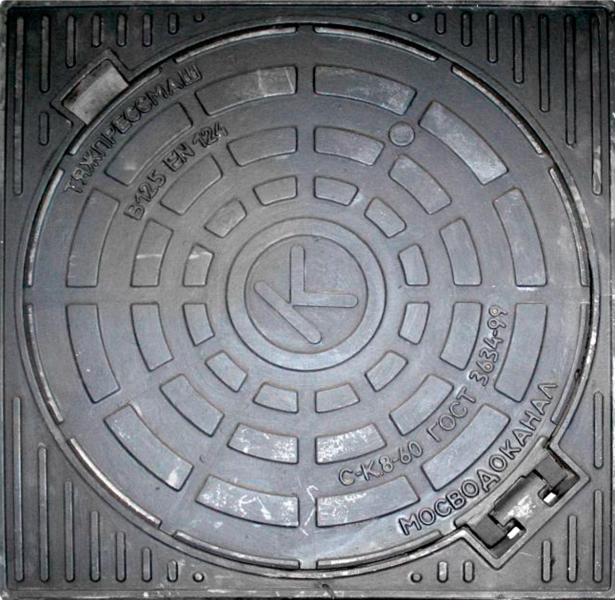 Опорно-укрывной элемент с корпусом квадратной формы модели ОУЭ-125-КВ-600 (Канализация/Водопровод) является верхней частью смотрового колодца и обеспечивает доступ в каналы с подземными коммуникациями.